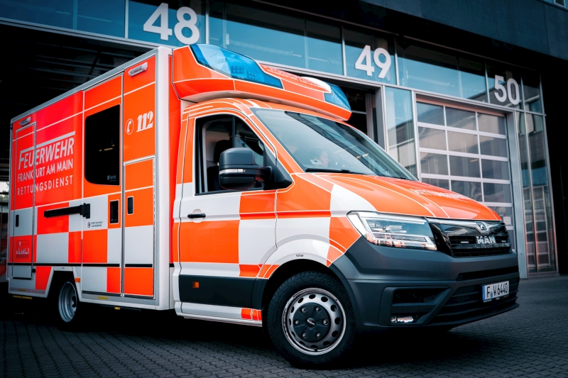 Aktuell sind rund 75 MAN-Fahrzeuge für die Feuerwehr Frankfurt im Stadtgebiet unterwegs, 25 davon basieren auf dem »TGE« und wurden für den Rettungsdienst individuell konfiguriert. Mit der Entscheidung für dieses Modell setzt die Feuerwehr Frankfurt auf ein bewährtes Fahrzeugkonzept, das den Anforderungen des Rettungsdienstes gerecht wird und die Einsatzkräfte im Alltag unterstützt.