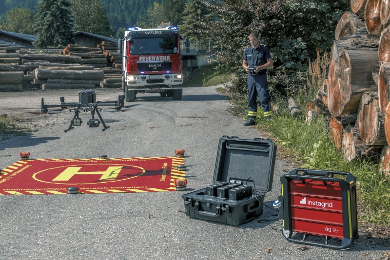 Mit Instagrid »GO RESQ« wird eine neue Lösung angeboten, die passgenau auf die besonderen Anforderungen von Blaulichtorganisationen zugeschnitten ist. Feuerwehren, Rettungsdienste und Katastrophenschutz gehen dank »GO RESQ« mit einer sicheren, mobilen, wetterfesten und emissionsfreien Stromversorgung in den Einsatz.