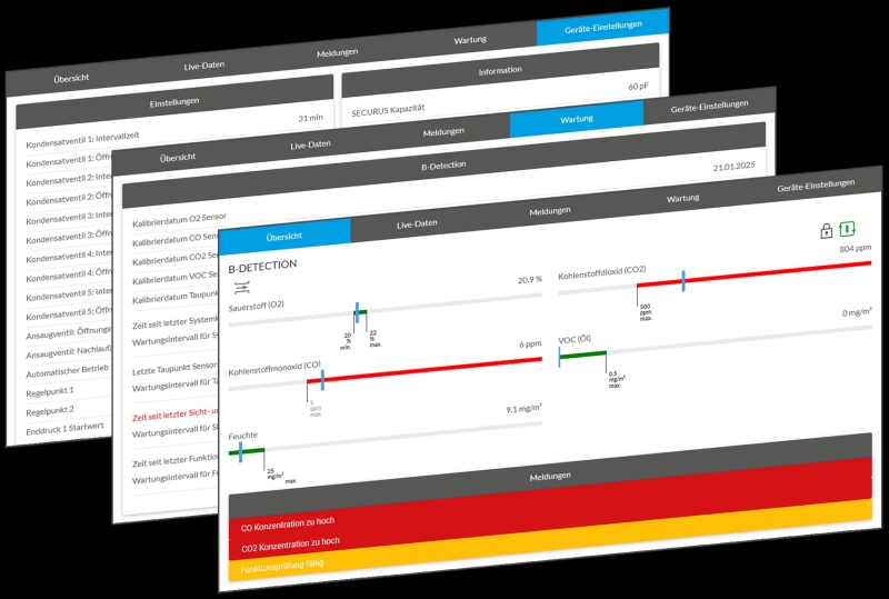 Der Betreiber profitiert zudem von erhöhter Rechtssicherheit. Durch den Einsatz von »B-DETECTION PLUS« kann er im Ernstfall nachweisen, dass die Luftqualität jederzeit den geltenden Bestimmungen entsprochen hat. Hierfür loggt das System sämtliche Messdaten – entweder intern auf einer SD-Karte, über verschiedene Datenschnittstellen direkt in Ihrem System oder auf Wunsch auch in der »B-CLOUD« von Bauer.