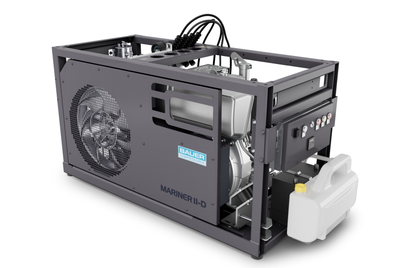 Mit dem »Mariner II-D« bringt Bauer Kompressoren die zweite Generation seines bewährten mobilen Atemluftkompressors auf den Markt. Die erweiterte Verdichterreihe bietet deutlich mehr Leistungsoptionen und ist konsequent auf den professionellen Einsatz unter anspruchsvollen Bedingungen ausgelegt.