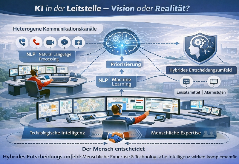 Die Leitstelle der Zukunft versteht sich damit als hybrides Entscheidungsumfeld, in dem menschliche Erfahrung und technologische Unterstützung zusammenwirken.